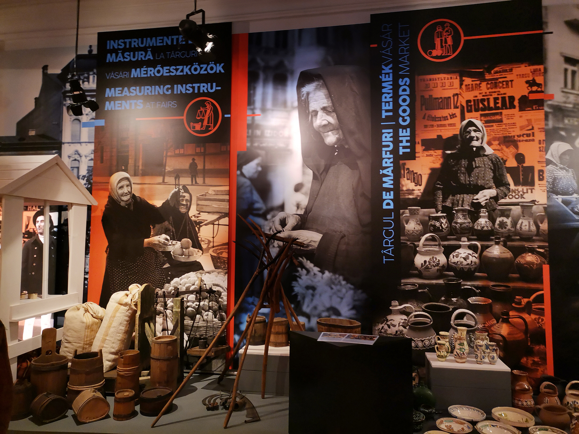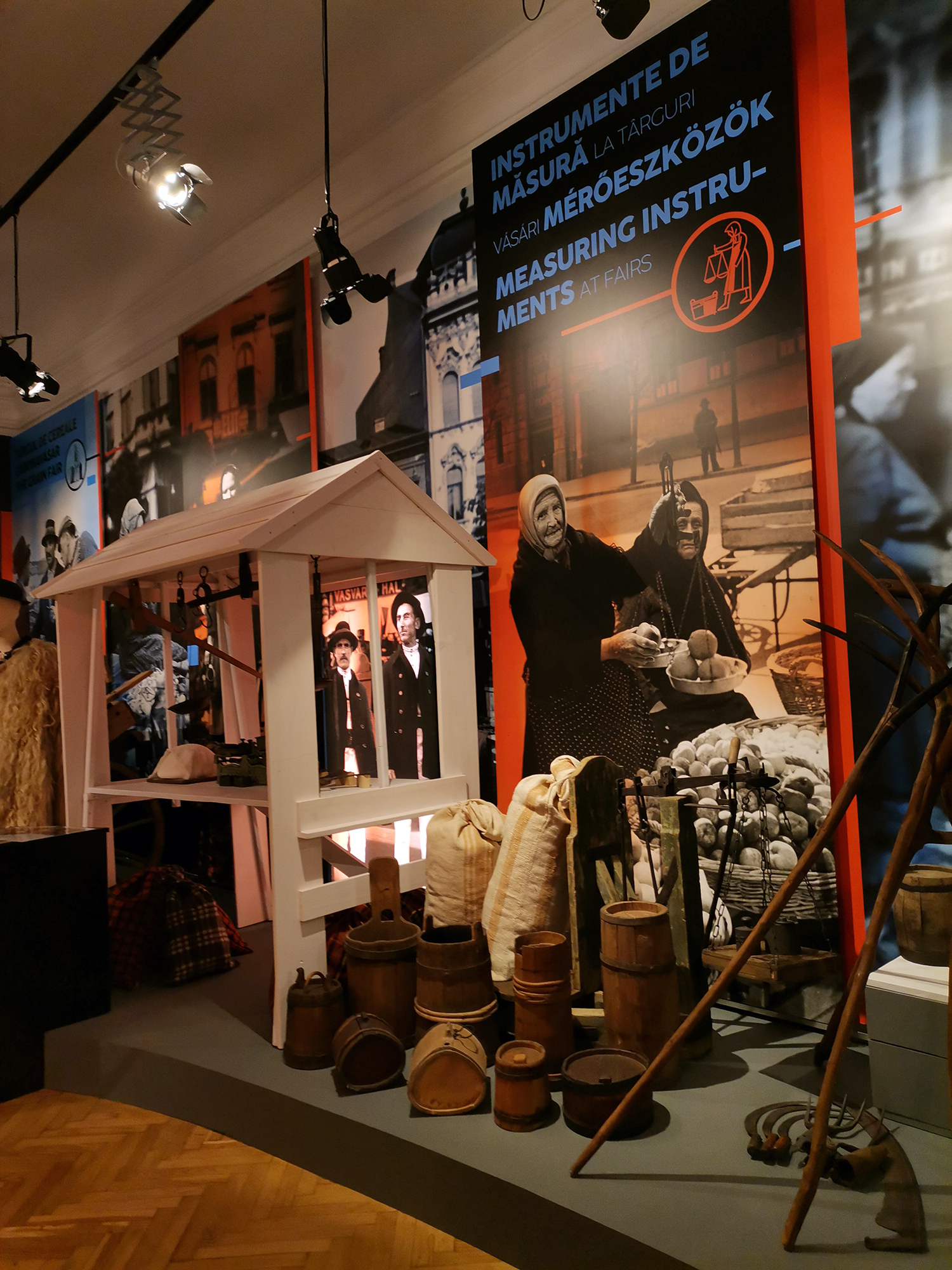 Pentru exemplificarea instrumentelor de măsură în târguri, am expus un cântar de lemn, de tip roman, provenit din Sângeorgiu de Pădure, cântare de mână din metal, o mierță pentru măsurat cereale din Sângeorgiu de Pădure și una din Ditrău, și un sfert de mierță (pătrar) pentru măsurat cereale.